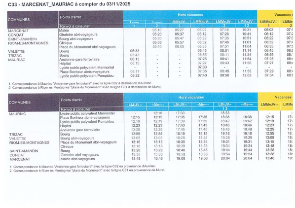 les horaires de la ligne C33 DISPONIBLE EN MAIRIE
